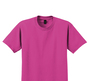 - 50/50 cotton/polyester (Dark Heather, Safety Pink, Safety Green, Safety Orange, Heathered Cardinal, Heathered Indigo, Heather Navy, Heather Sapphire)