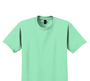 - 50/50 cotton/polyester (Dark Heather, Safety Pink, Safety Green, Safety Orange, Heathered Cardinal, Heathered Indigo, Heather Navy, Heather Sapphire)