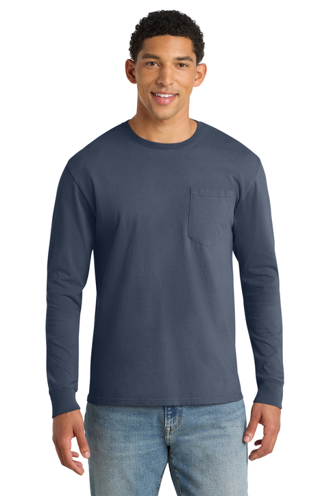 Port & Company® Beach Wash® Garment-Dyed Long Sleeve Pocket Tee